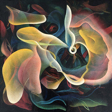 Artists draw inspiration from many sources. Paulina Peavy said that her paintings and other works were delivered through her from an extraterrestrial entity named “Lacamo” which she pronounced “La-I-Come-Oh.” Her amazing artwork was sometimes signed by Lacamo, sometimes by Peavy, and at times both. She designed elaborate masks that she wore when she worked, saying that her ET source was better able to work though her when she had them on.